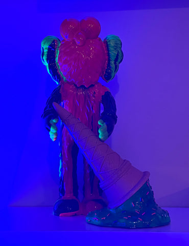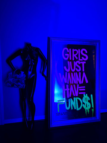 PLUG THIS GLOW IN THE DARK BLUE LIGHT TO ADD ANOTHER LEVEL OF DIMENSION TO YOUR ART. THIS LIGHT MAKES THE NEON PAINTS POP AND GLOW EVEN MORE.